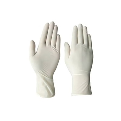 The TJO product is a powder-free, disposable latex glove made from natural latex rubber in a cream-white color. These gloves are non-sterile, ambidextrous, have a smooth finish, and are designed for single use only.